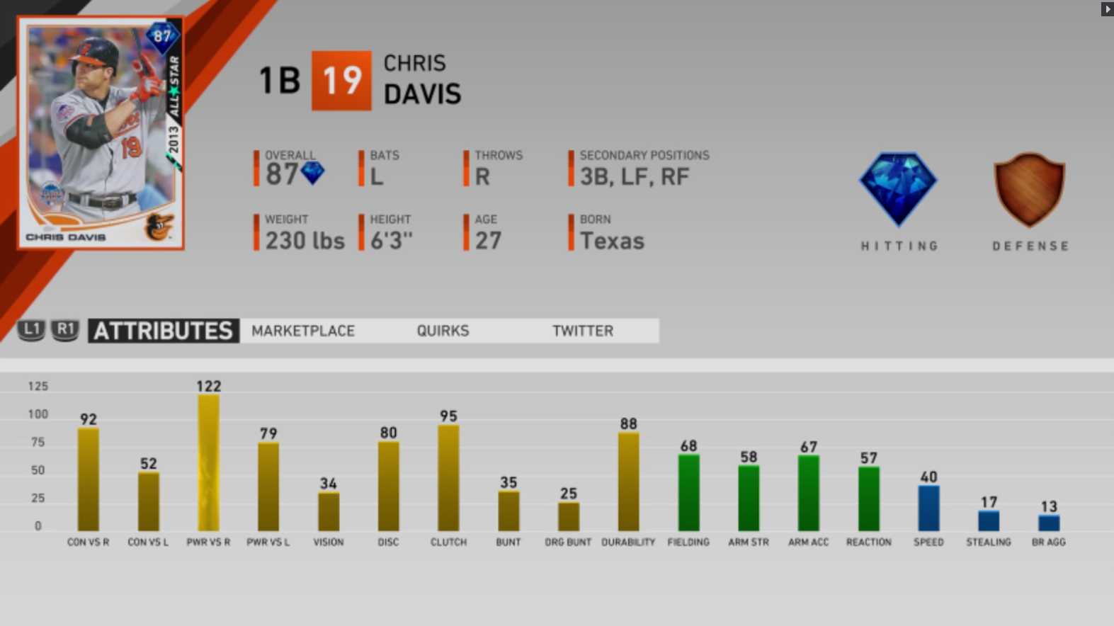 Coming in at number five is possibly the best power-hitting card in Diamond Dynasty mode, 87 Overall 2013 All-Star Chris Davis.