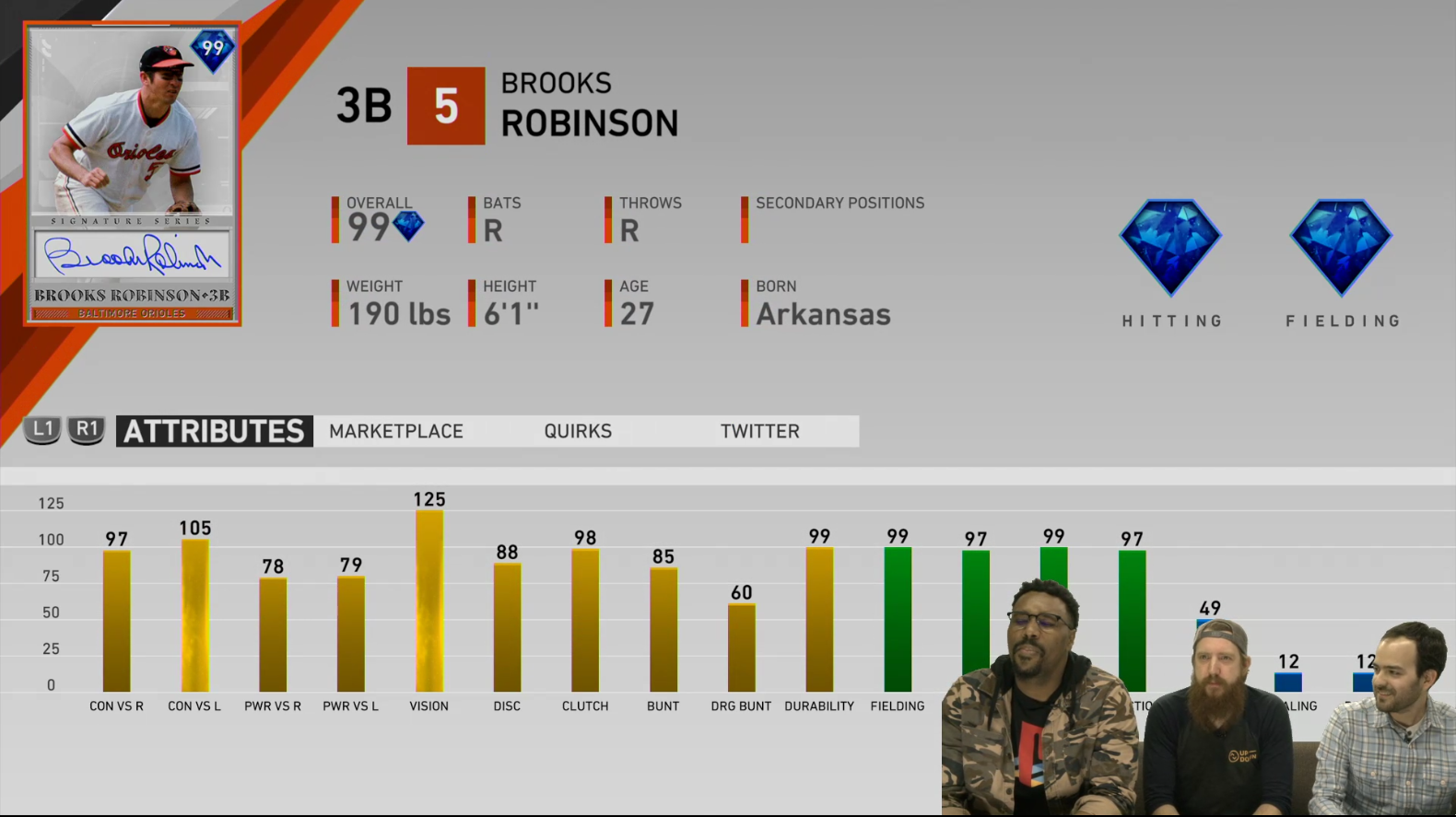 Coming in at number two is the best fielding third baseman in history, 99 Overall Signature Series Brooks Robinson.